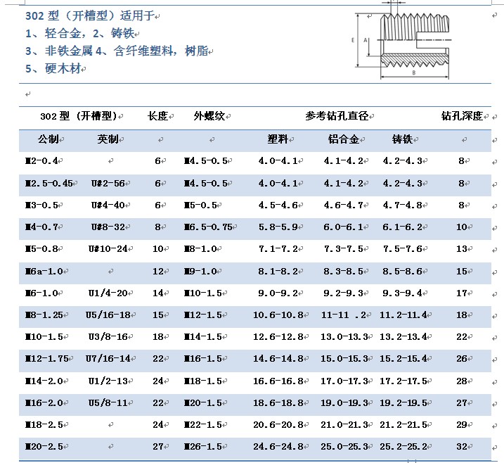 1.在相应的螺纹底孔直径范围内进行底孔钻孔加工。 配套材料硬度较大时,请在该范围内钻稍大一些的底孔。